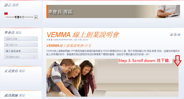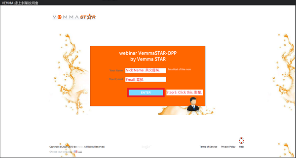 VemmaSTAR 團隊 中文簡報會議 OPP 線上創業說明會 登入流程圖解: