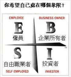 企業所有者:指擁有屬於自己的賺錢系統(通常是一間公司),自己就算不工作,也一樣會有源源不斷的穩定收入進來。